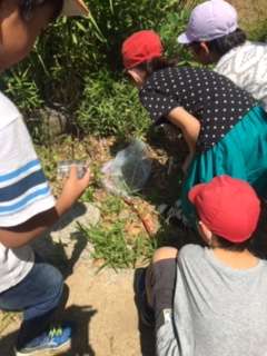 と、子どもたちは講師の方々に次々に質問。その場で名前を教えてもらえるので、どの子も夢中になって探し、あっという間に時間が経ってしまいました。どの班もおよそ20種類、3班はなんと27種類の生き物を見つけることができました!次回は秋以降に調査する予定です。子どもたちは今から楽しみにしています。