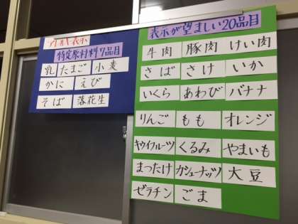 今週の月曜日には、食物アレルギーを起こす可能性のある食べ物について学習しました。「えっ!これも!??」と、驚いている子どもも多くいました。