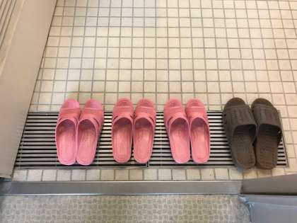 健康保健委員会の人たちが、トイレのスリッパを新しいものと交換してくれました。きれいなトイレが、ますますきれいになりました。大切に、清潔に使ってください。