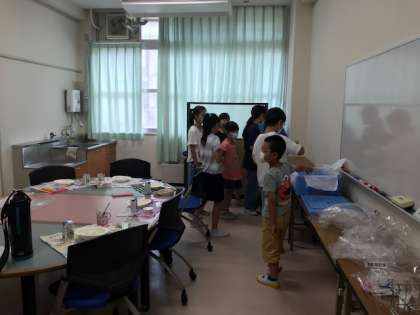 今日の給食のメインメニューは、加熱しないレトルトカレーということで、災害時を想定して、地区別子ども会ごとに分かれていただきました。普段の活動場所に冷房のない班は教育相談室や多目的室に集まりました。いつもとは全く違う給食を、いつもとは違うグループで食べることで、非常災害時を想像することができたと思います。