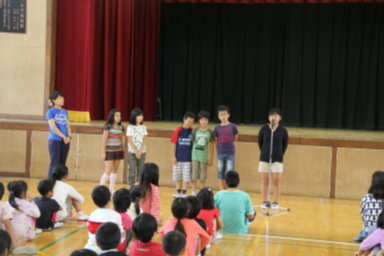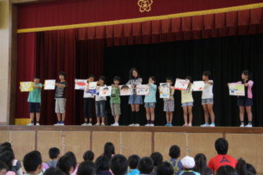 今日の集会では、健康委員会が明日からの健康週間に向けて、歯みがきについての発表をしました。曜日によって、歯みがきの仕方を工夫することで、毎日意識して歯みがきを続けてほしいと思います。