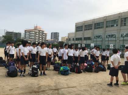 今日から岡山県津黒高原で、林間学習を行います。朝早くからおうちの方々も大勢見送りに来てくださいました。ありがとうございます。