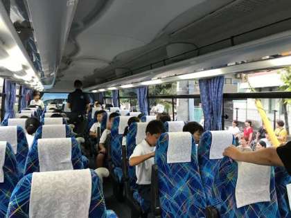 今年はバス2台を仕立てたので、車内は余裕の広さです。行って参ります。