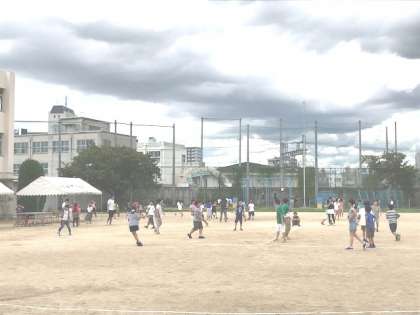 残暑厳しい中、運動会の練習が始まっています。子どもたちはさぞ疲れていると思いきや、お昼休みには大勢の子どもたちが運動場に出てきて、思い思いに遊んでいます。教育実習の先生方も加わって、とてもにぎやかです。