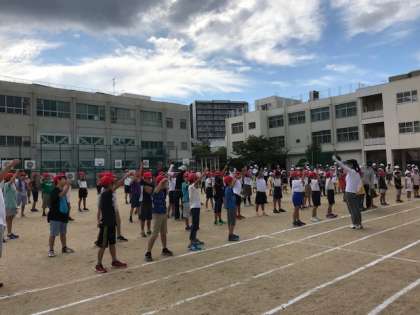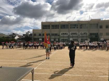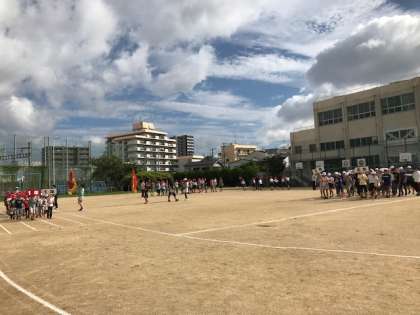 ようやく気温が平年並みに下がり、気持ちのいい朝となった今日、児童集会の時間を利用して、運動会の入場行進と歌の練習をしました。1年生も堂々と行進をすることができました。9月22日が待ち遠しいですね。