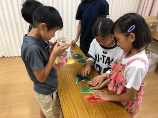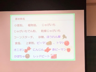カルビーさんからのもう一つのゲーム「野菜あてゲーム」です。サッポロポテトは8種類の野菜を使っています。さてなんの野菜を使っていると思いますか?ヒントで2つは教えてもらいました。本物のサッポロポテトをみながら班で考えました。