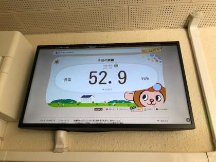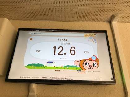 災害などで停電した際には非常電源となって活躍してくれます。モニターは体育館入口向かって左の上にあります。ご来校の折りにはぜひご覧ください。