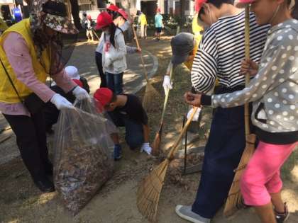 気持ちのいい秋の空のもと、落ち葉を掃き、雑草を抜いたら公園がすっかりきれいになりました。地域の一員として働いたみんなの心もすっきり!3時間目からの学習にも集中できたに違いありません。
