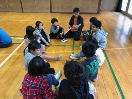 今日は2学期初めてのほめほめ集会がありました。音楽を流しながらボールを回して、曲が止まった時にボールを持っている人が立ちあがり、なかよし班のみんながよいところを述べ合うというゲームです。照れくさいけれども、先週のなかよし遠足で一日一緒に活動したことを思い出して、たくさんのほめ言葉が飛び交いました。