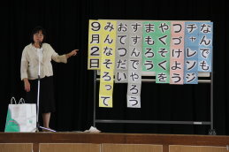 校長先生からは、この一学期に取り組んできた「にこにこ」「どんどん」「ぽかぽか」のふり返りや、「な」「つ」「や」「す」「み」のめあてについてのお話がありました。