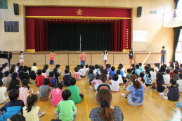 「1学期をふり返って」では、各学年の代表のみなさんが前に出て、この1学期に頑張ったことを大きな声でしっかりと発表しました。前で発表している人を心の中で応援するようにしっかりと耳を傾け聞いている児童のみなさんも大変立派でした。