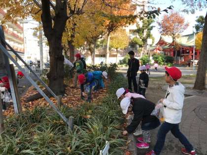 朝の冷え込みはどこへやら、1年生たちが2時間目に、日差しが温かい十三東公園に紅葉した葉っぱを探しに出かけました。神津神社の横にある、この公園は地域の方たちがいつもきれいに掃き掃除をしておられるので、ごみひとつなく、みんなで気持ちよくいちょうにさくら、かえでの葉などを拾い集めました。ありがとうございました。