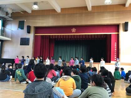いよいよ2学期も残り5日となりましたので、今日の児童集会の時間に、2年生と4年生のがんばり名人発表を行いました。ひとりひとり2学期にがんばったことを発表し、拍手をもらいました。運動会に全校遠足、学習発表会と盛りだくさんの2学期だっただけに、みなさんもすっかり成長しました。よくがんばりました。 (^^)/