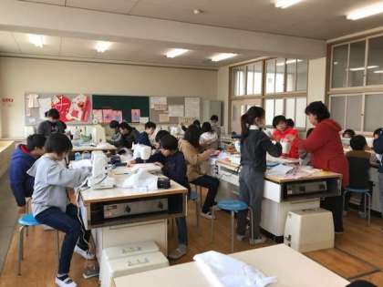 卒業までカウントダウンが始まっている6年生たち、家庭科で手縫いとミシン縫い両方のぞうきんを在校生へのプレゼントとして製作しています。男女問わず、ミシン掛けも手慣れたものです。自分の母校を大切にする気持ちを、後輩にぜひ引き継いでください。