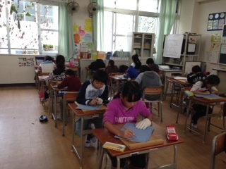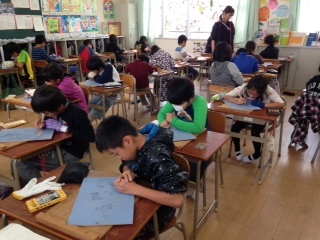 図画工作で、初めて彫刻刀を使いました。みんな安全に気を付けて取り組もうとしていました。とても集中していたので、物音ひとつ立たない教室でした。