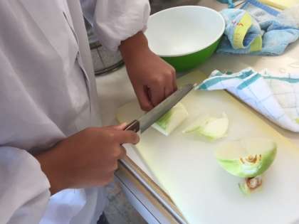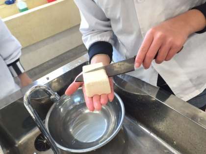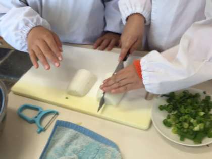 野菜をいりこだしで煮始めると、家庭科室にはとても良い香りが!