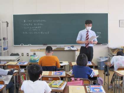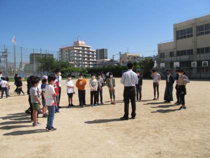 人数が多い6年生もクラスを半分に分けて、分散登校をしました。児童朝会が終わると担任の先生の周りに、お互いの間隔をあけて並び、久しぶりに友達と顔を合わせました。小学校生活を共に過ごしてきた友達との最後の一年が、いよいよスタートです。