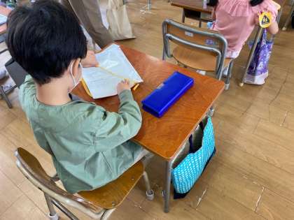 下:プリントを連絡ぶくろに自分できれいにかたづけます。