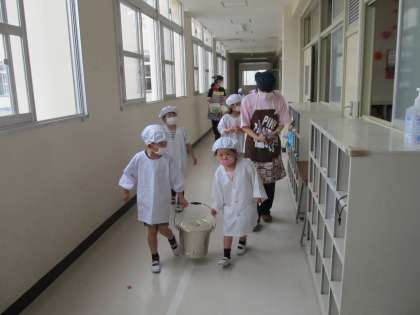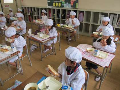 ふわふわのパンをほおばると、ほんのり甘くて、思わず「めっちゃおいしい♪」と声がもれました。じゃがいもやニンジンの具が入ったお味噌汁も、1年生の子ども達は喜んでいました。