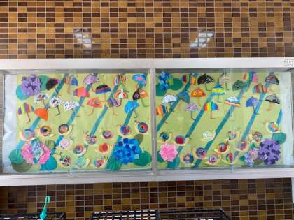 1,2年生で、雨の季節を想像して玄関を飾りました。