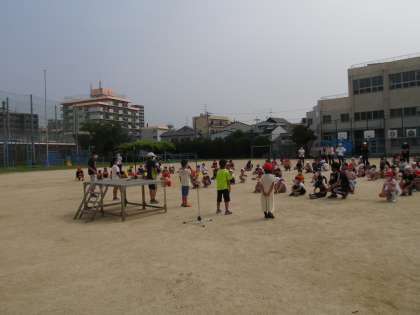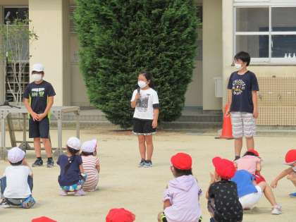 全校児童の前に立ってみんなから見られると、やはりドキドキと緊張します。1年生からスピーチをして最後に礼をすると、みんなから大きな拍手が贈られました。