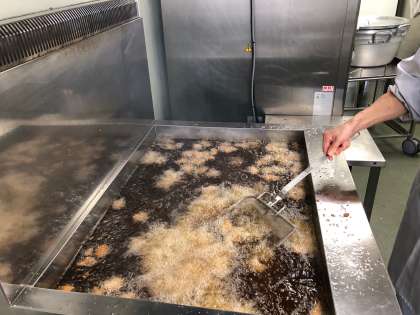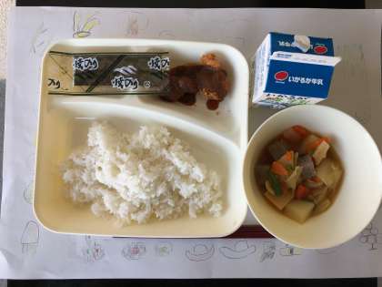 今日は、「みそカツ」が登場しました。豚肉に塩こしょうで下味をつけて、衣をつけて油で揚げた手作りのカツに、「八丁味噌、赤みそ、砂糖、みりん、水、でんぷん」で作ったたれをかけてました。サクッ、カリッとした食感で児童にも大好評でした。
