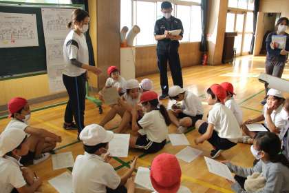 最後には学習の振り返りをして、ワークシートに書きまとめました。そして友達の技の良いところや、今日の学習で気づいたことを発表しました。