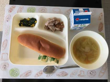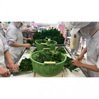 今日は「ほうれんそうのソテー」でした。給食室にたくさんのほうれんそうが届きました。これから、どんどん、おいしくなるほうれんそうです。栄養も豊富です。お家でも食べてください。