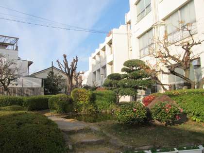 剪定をしていただいたおかげで、小学校の玄関まわりも藤棚もスッキリ。日がよく通るようになって、たいへん明るくなりました。