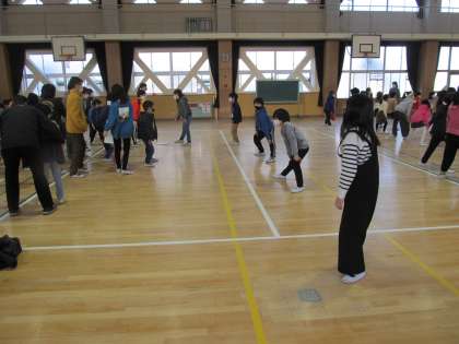 講堂での児童集会は、みんなで久しぶりに朝の体操をしてスタートしました。