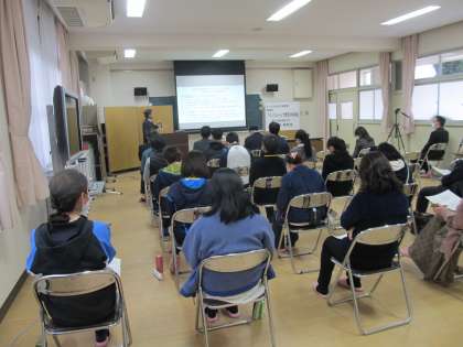 今回の講演会には十三小学校の教職員だけでなく、他校からも参加されました。また、Teamsの機能を使ってオンラインでの同時配信も行い、大阪市内の50校ほどの小中学校で視聴していただきました。