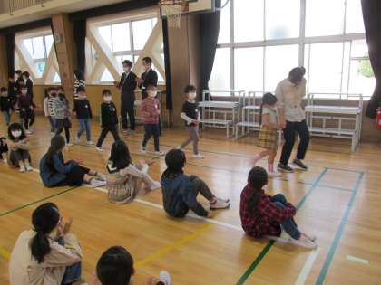 1年生の入学をお祝いする気持ちと、十三小学校に歓迎する気持ちを込めて、上級生と教職員で大きな拍手を贈りました。