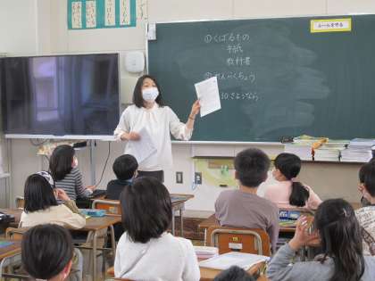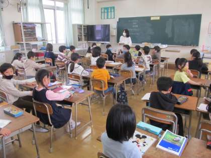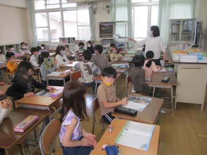 3年生の教室では、新しい教科書を配布していました。生活科がなくなって、3年生からは社会と理科の学習が始まります。子ども達も社会と理科の教科書を開いて、写真を眺めたり、説明の文章を読んだりして楽しんでいました。
