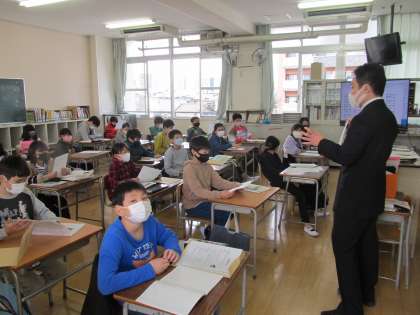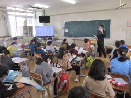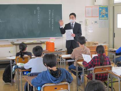 先生の話を落ち着いて聞いている姿に、高学年になった子ども達の成長を感じました。