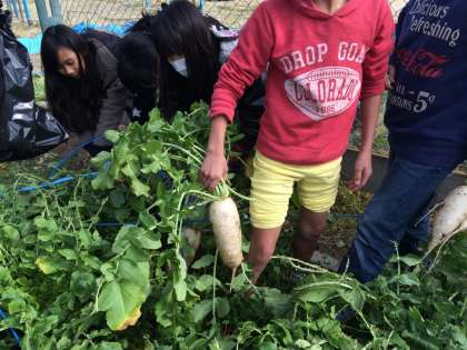 収穫した野菜を入れたお鍋を囲み、一緒に思い出を語り合います。