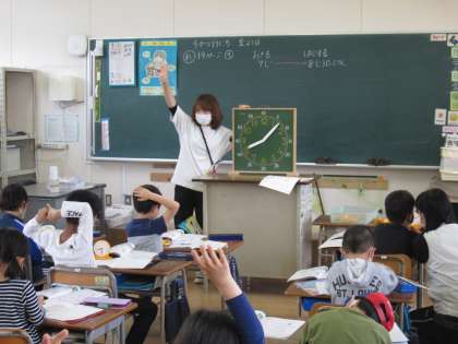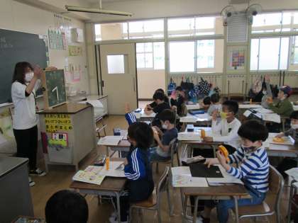 担任の先生の「1時から2時半までは、何分間でしょう?」と問いかけると、子ども達は時計を動かして針がどれぐらい進むかを確かめていました。「1時間と30分がたったよ。」と、手を挙げた子が答えます。