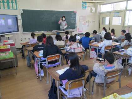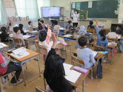 朝はまばらだった教室の座席が、4限目の始まりには埋まってクラスのお友達がそろいました。低学年の教室では、これまでの学習のふりかえりをしたり、漢字の学習をしたり、家庭で取り組む課題を配ったりしていました。
