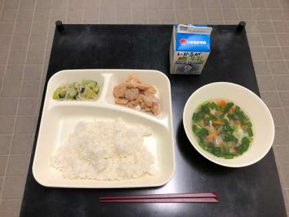 今日はみんな大好き「鶏肉のからあげ」でした。ぜひ、お家でも給食のからあげの味をお試しください!!!