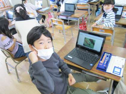 子ども達は覚えるのも早く、2回目の今日はログインもスムーズできて、早く準備をすることができました。今回はさらに発展させて、インターネットで子ども用のサイトを閲覧しました。「図鑑」と書かれたところには、動物や花、昆虫、星座など、いろいろなテーマで物を調べることができます。子ども達は興味のあるテーマを選んで、画像を見ては喜んでいました。