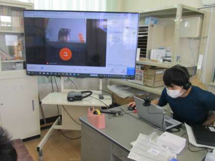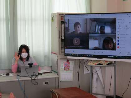 4月の末から教室の方でノートパソコンの使い方や、テレビ会議への参加の仕方を練習してきたので、3年生も4年生も接続できた児童が多かったです。週末の間に家庭のインターネット環境につないでいただくなど、保護者のみなさんにもご協力いただいたおかげです。本当にありがとうございました。
