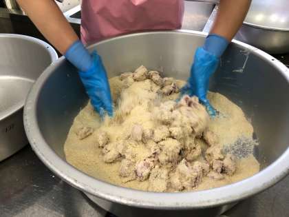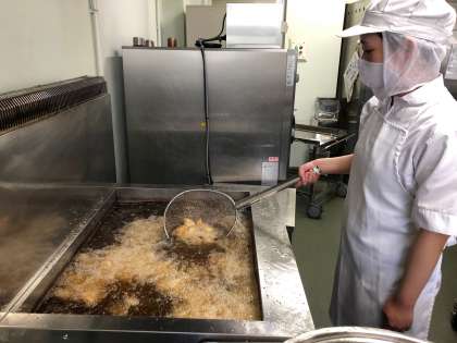 今日の給食「一口トンカツ」手作りです!