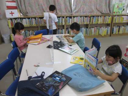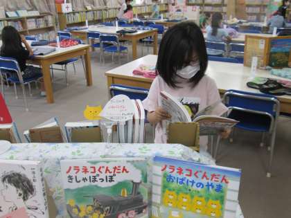 借りていた本を返却すると、子ども達は新しい本を探します。お気に入り作者の絵本や、迫力のある恐竜の本、折り紙がたくさん載っている本、『新しく入った本』のコーナーに並んでいる本…などなど。「どの本にしようかな」と迷いながらも、新しい本との出会いにワクワクすします。