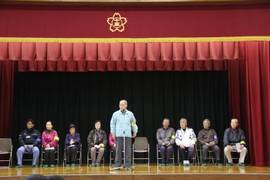 そして、手紙を一人一人にお渡ししたあと、最後に子ども達へ一言かけていただきました。子ども達の登下校を見守っていただきながら、子ども達から元気をもらっているというお話もありました。