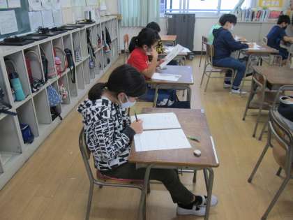 小学6年生と中学3年生を対象とする『全国学力・学習状況調査(全国学力テスト)』を、十三小学校でも実施しました。今年度は国語と算数の2教科のテストに取り組みます。