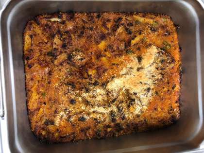 3.耐熱容器に2を入れ、パン粉をふって、230度18分焼く。