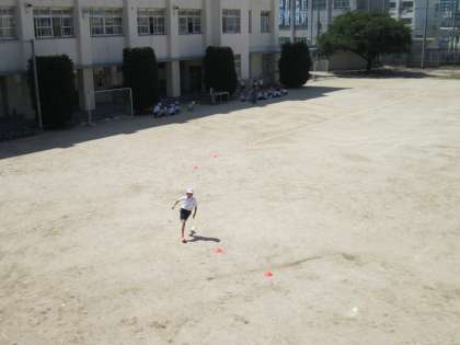 夏への変わり目で気温も上がってきたため、授業の途中で水分補給の時間をとったり、交代でタイムを計るときには校舎の陰で待機をしたりするなど、熱中症対策にも配慮していました。