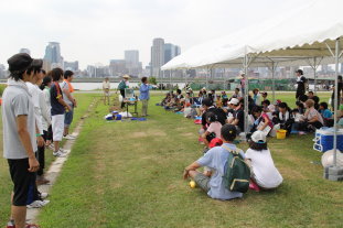 この「親子リバースクール 干潟に学ぼ!干潟で遊ぼ!」は、淀川区に住む小学生(小学3年生以下は保護者同伴)が対象で、今回もたくさんの応募があり、抽選の結果参加できなかった子どもさんたちもいたそうです。中には、毎年参加されている親子が何組かあるそうです。