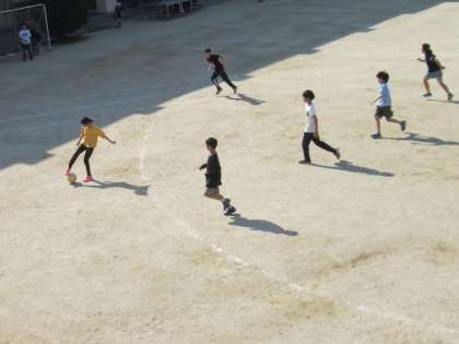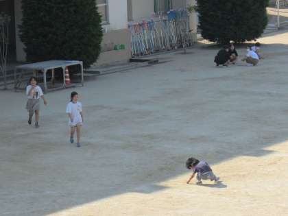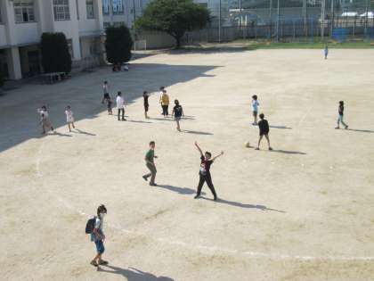放課後になると、運動場で遊ぶ子ども達の声が聞こえてきます。残れる子ども達が声をかけあって集まり、いろいろな学年を交じえてボール遊びをしたり、遊具で遊んだりしています。