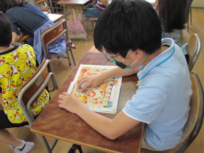 Thomas先生に名前を呼ばれた子が前に出て数えたり、みんなで一緒に確かめたりして、答え合わせも楽しんでいました。