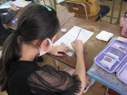 水曜日の6限目、習熟度教室に集まってまずは学級で出された宿題をします。宿題が終わった児童は、家から持ってきた課題に取り組みます。放課後ステップアップの初日の様子をのぞきにいくと、子ども達は集中して宿題や課題に取り組んでいました。そして、わからないところがあると学習支援の先生方に、自分からすすんで質問している場面が見られました。